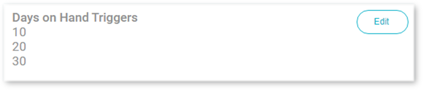 Days on Hand Reorder Trigger: this is the number of days on hand usage that will trigger the reordering report to suggest a quantity to reorder.