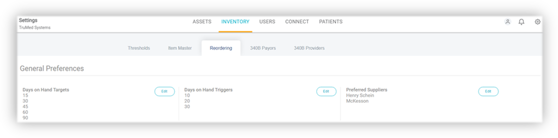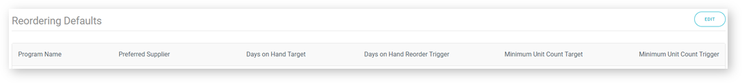 These are the default options to choose from when setting up information in the Reordering Defaults. To make changes or additions, select the ‘Edit’ button.