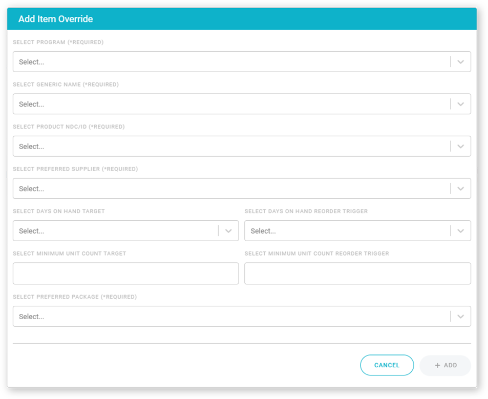 Minimum Unit Count Target (Optional): this provides the ability to manage “slow movers” or smaller quantities of items that never meet the days on hand targets or triggers. Enter a dose/unit quantity to set the desired unit count for this item to reorder up to.