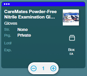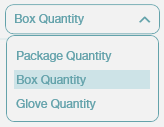 - Select the desired unit of measure to view the total on hand quantities in the selected unit of measure. This example shows there are 9 boxes of gloves with 50 gloves in each box.