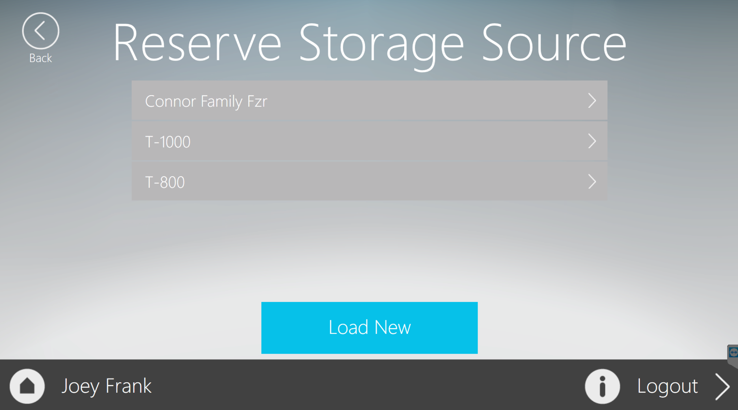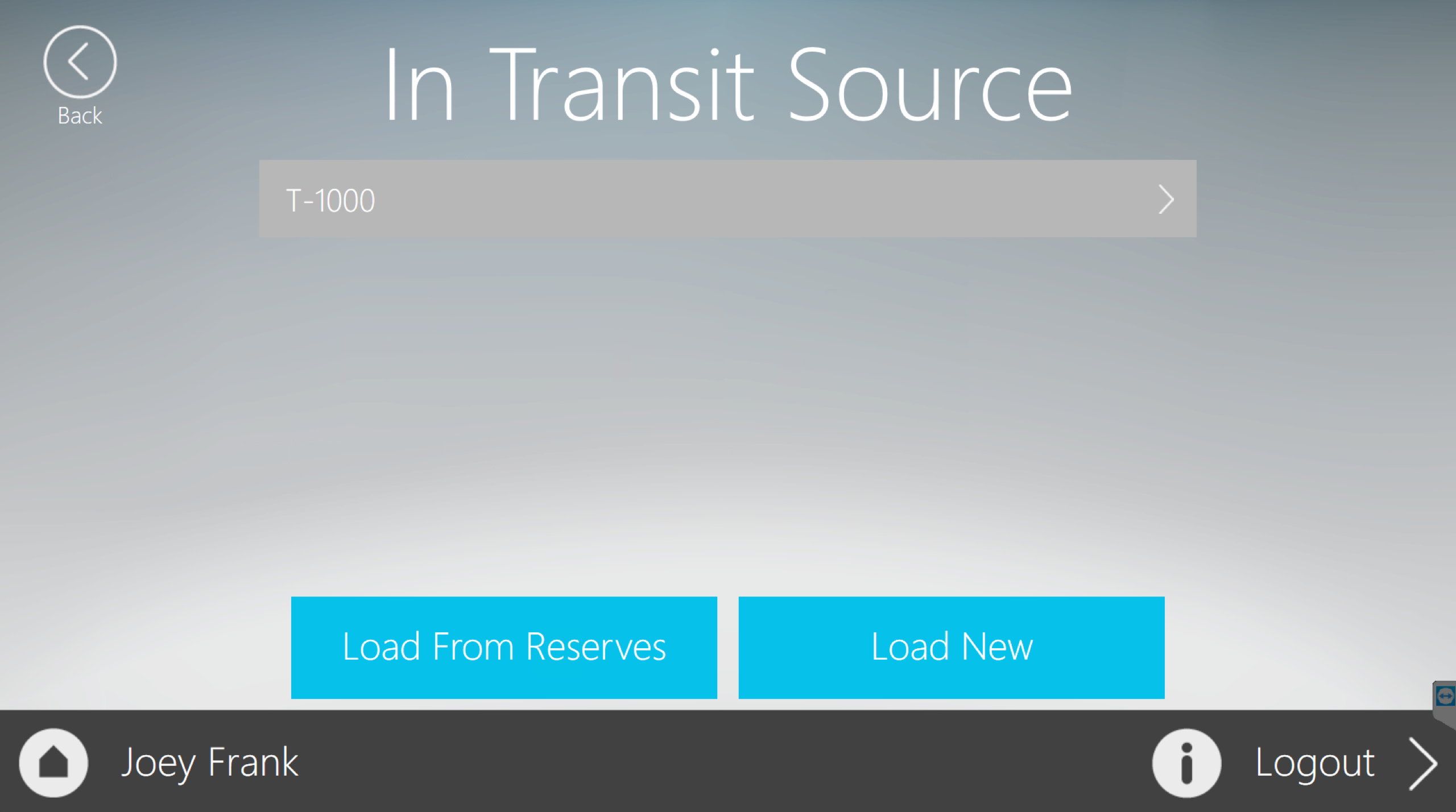 On the “Reserve Storage Source” screen, the user will select where the vaccine came from based on the Reserve Storage name. The user will then select from a list of vaccines in that Reserve Storage unit to complete the load.