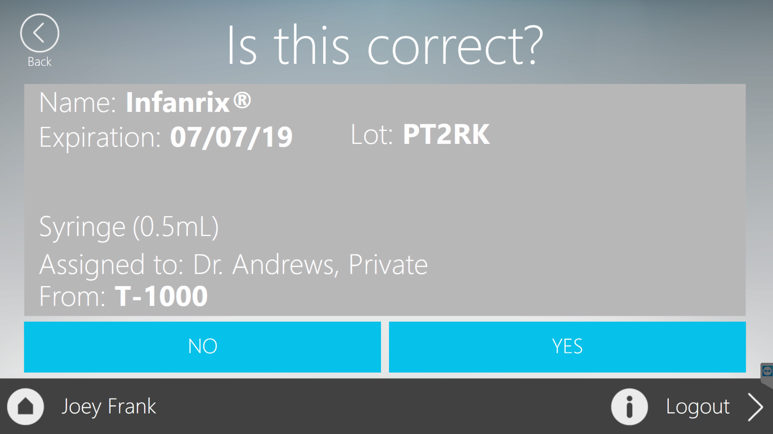 - After the barcode is scanned the user will confirm the details of the scan and make any necessary adjustments.