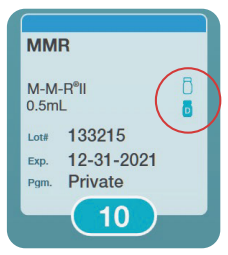 When the diluent is stored outside of the AccuVax, the MMR card display will represent that with a shaded 2nd vial marked with a "D".
