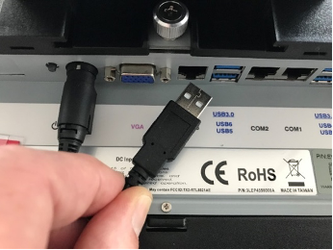2. Photo: Connecting the USB cable into the AccuShelf