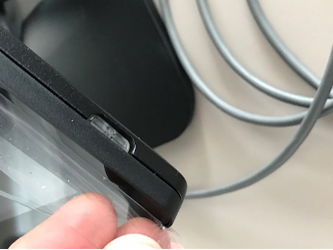 Locate the Power Button on the AccuShelf and press it. The power button is recessed on the right side, near the bottom underneath the fingerprint scanner. Confirm that the AccuShelf powers on.