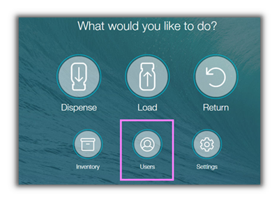 - Administrator users have access to all actions, Dispense, Return, Manage Inventory, Receive, Users and Settings.